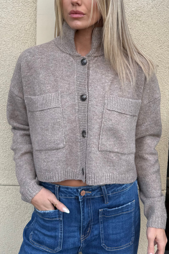 COLE NATURAL HIGH COLLAR CARDIGAN