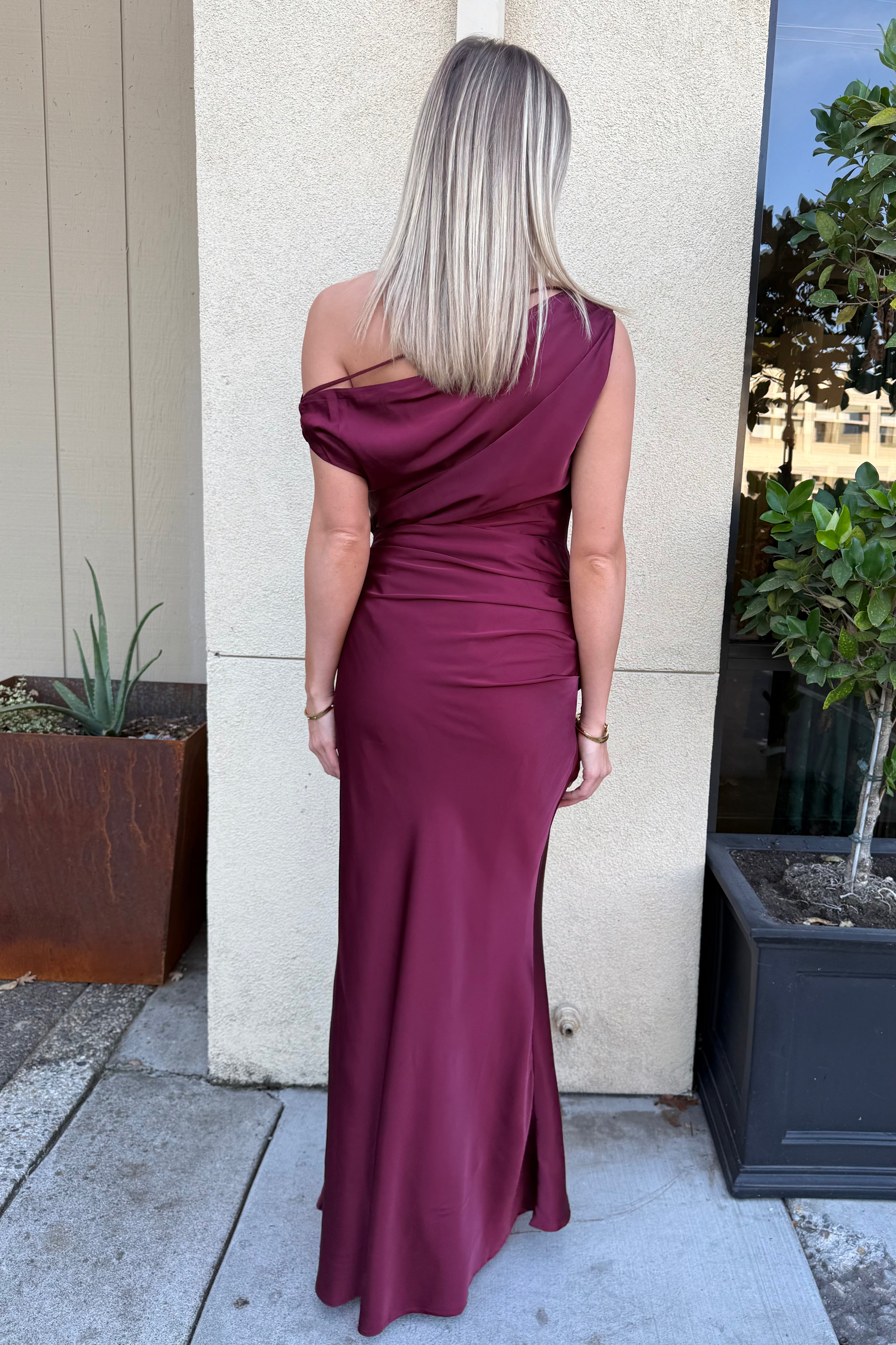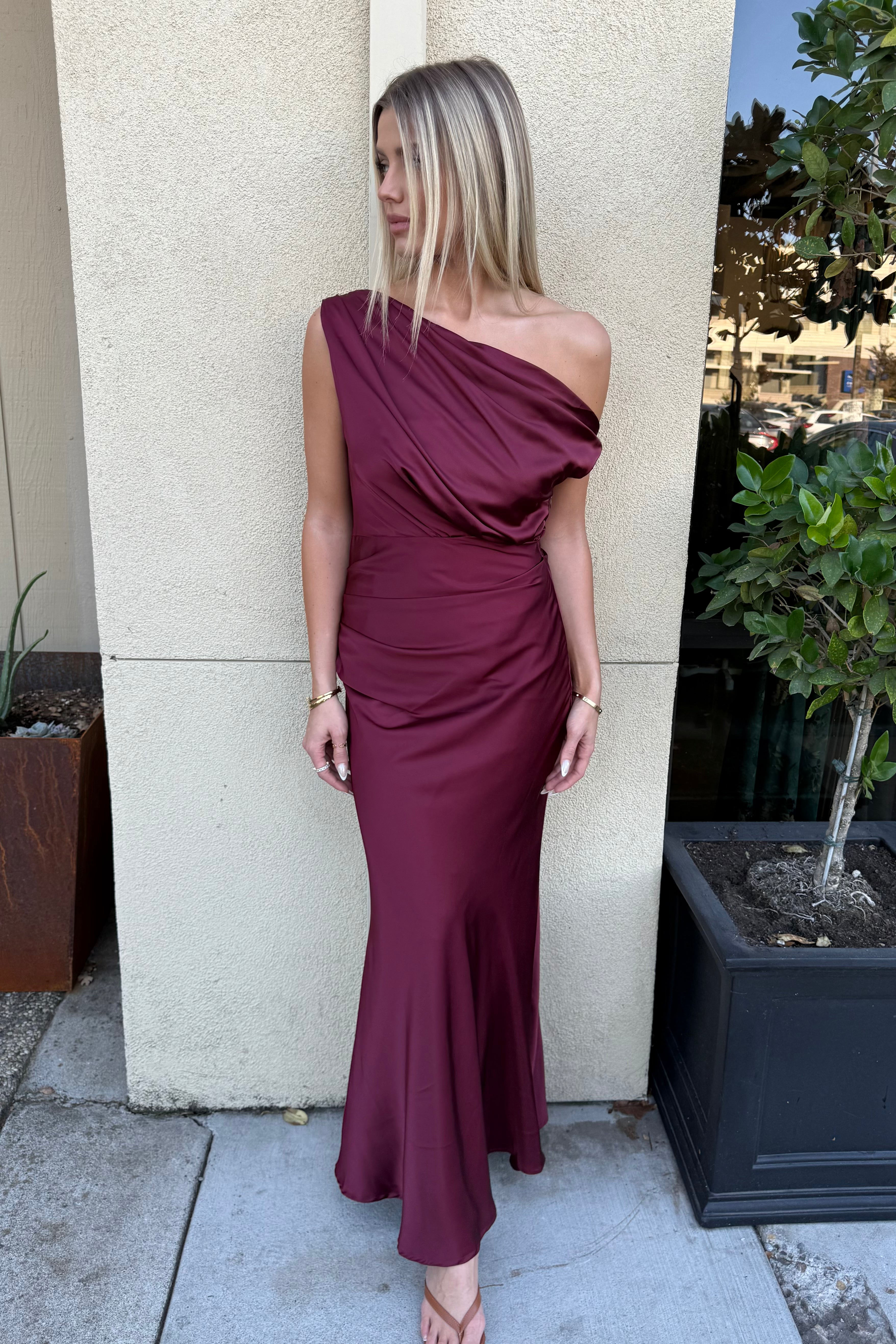 JULIETTE BURGUNDY OFF SHOULDER DRESS