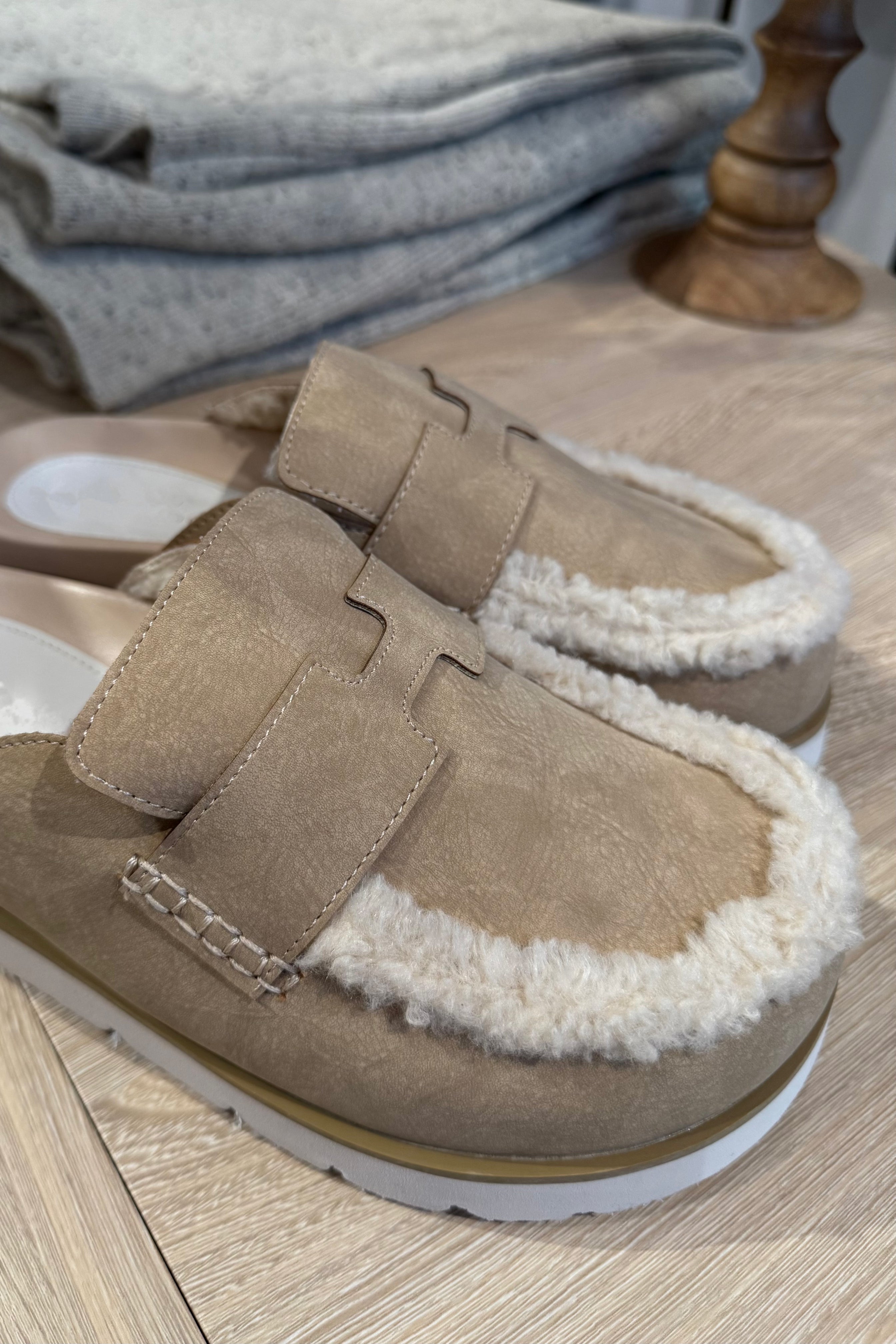 AVALON CREAM SUEDE SHEARLING MULES