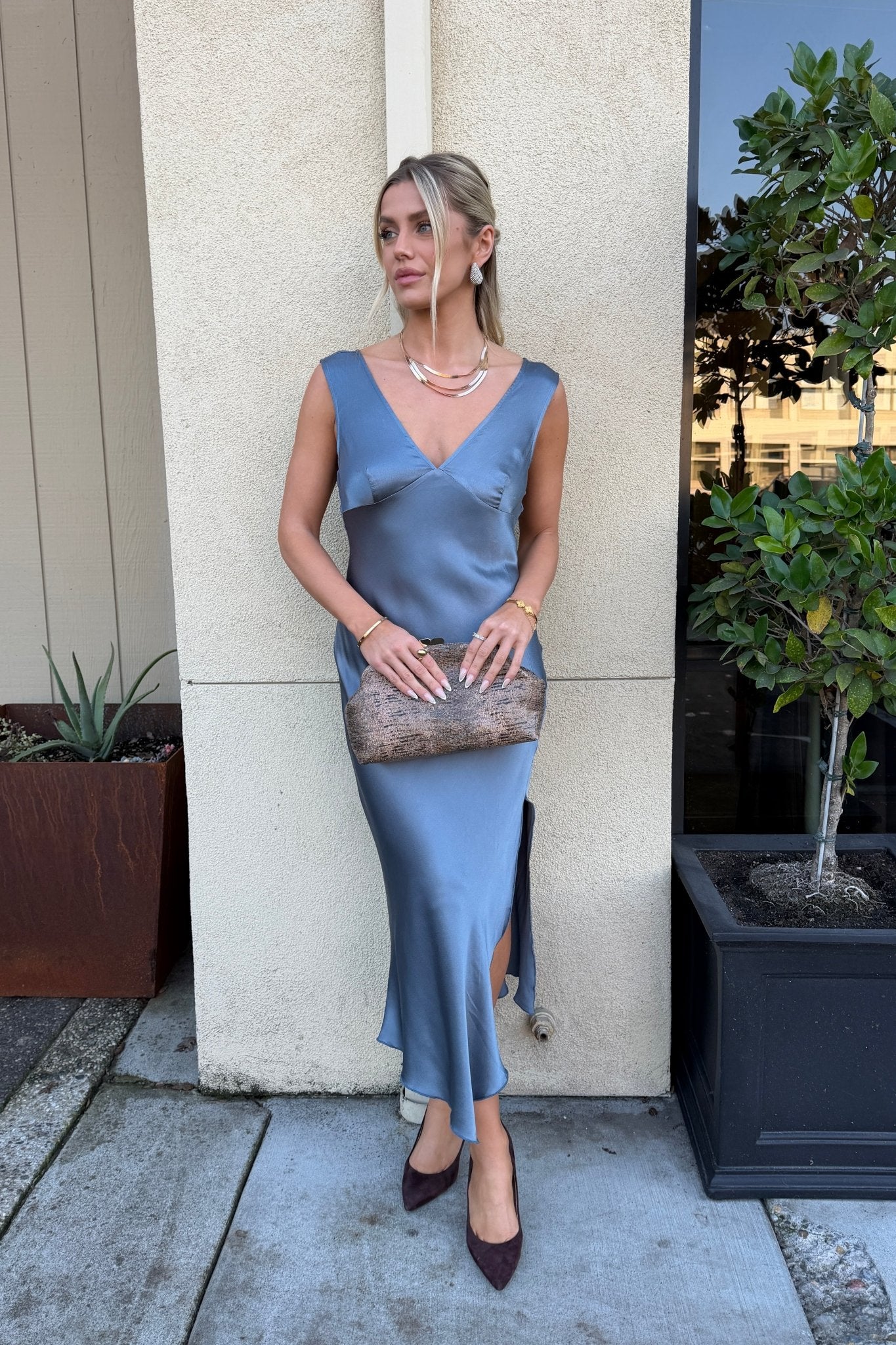 SATINEA BLUE SLIP DRESS