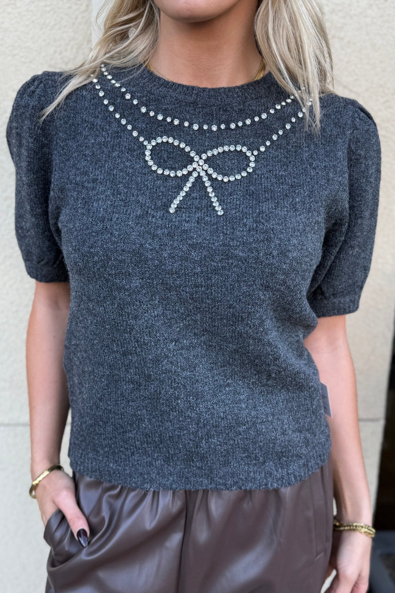 RUE CLER RHINESTONE BOW SWEATER