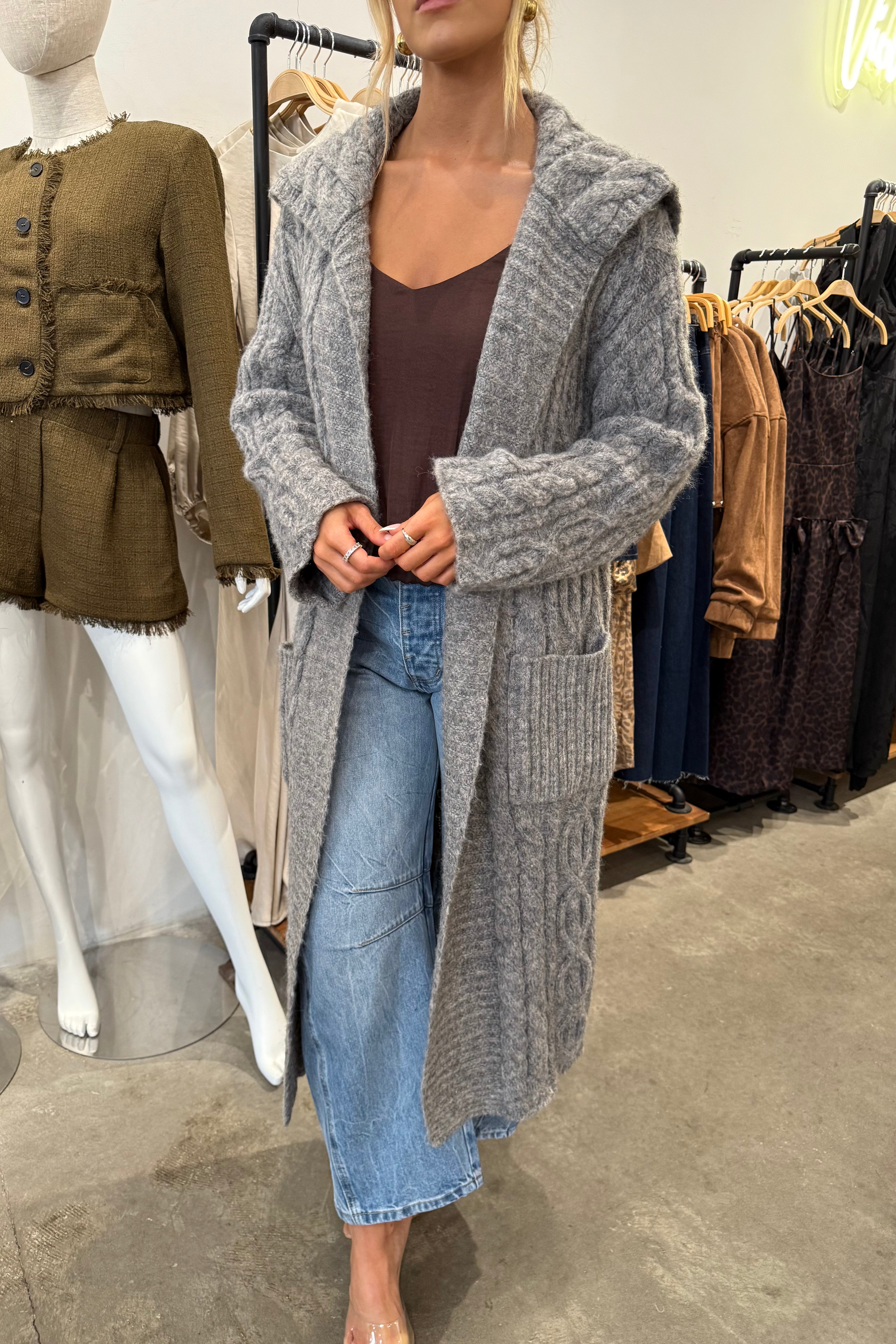 MARALANE CABLEKNIT OPEN CARDIGAN