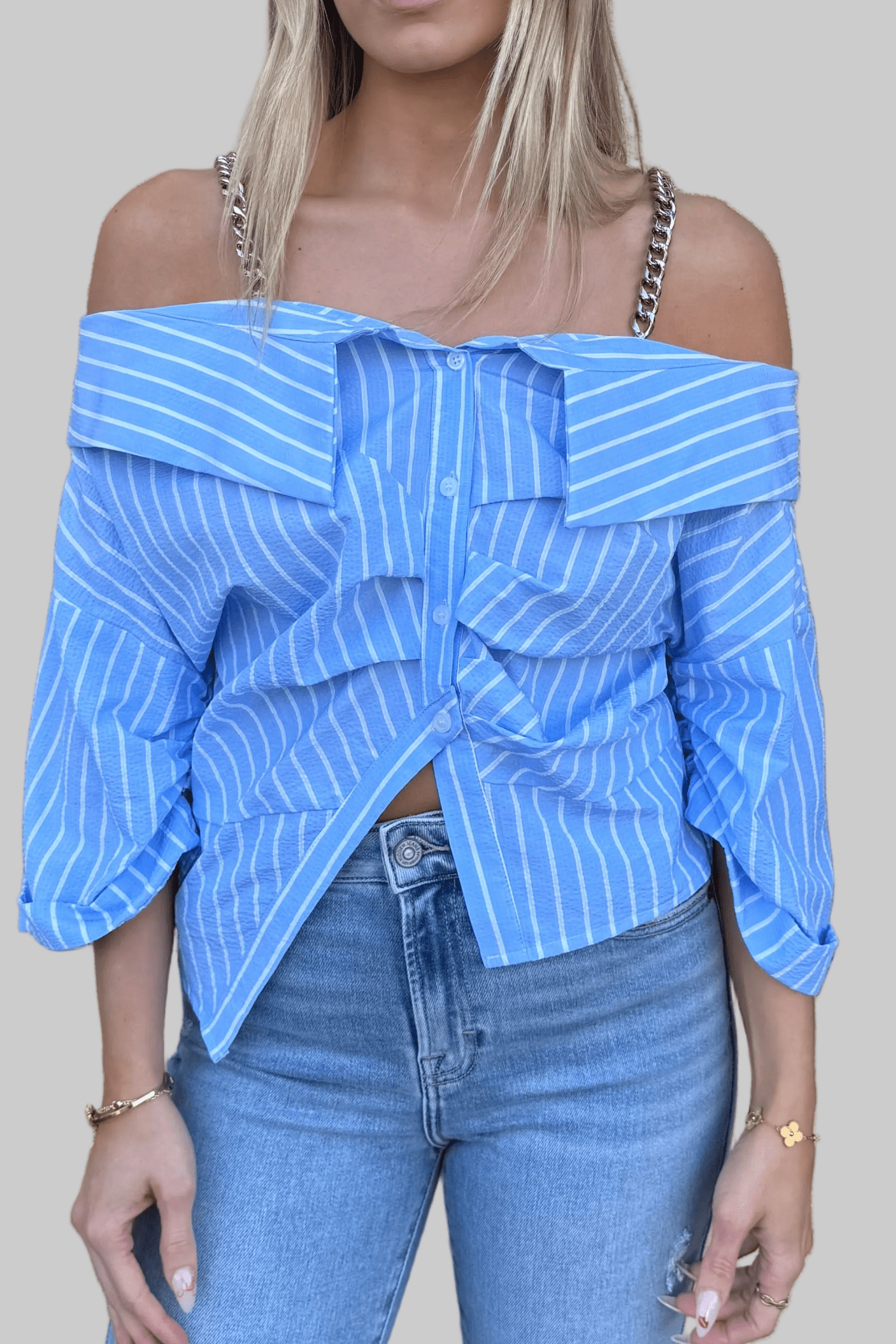 SOLENNE BLUE OFF THE SHOULDER TOP