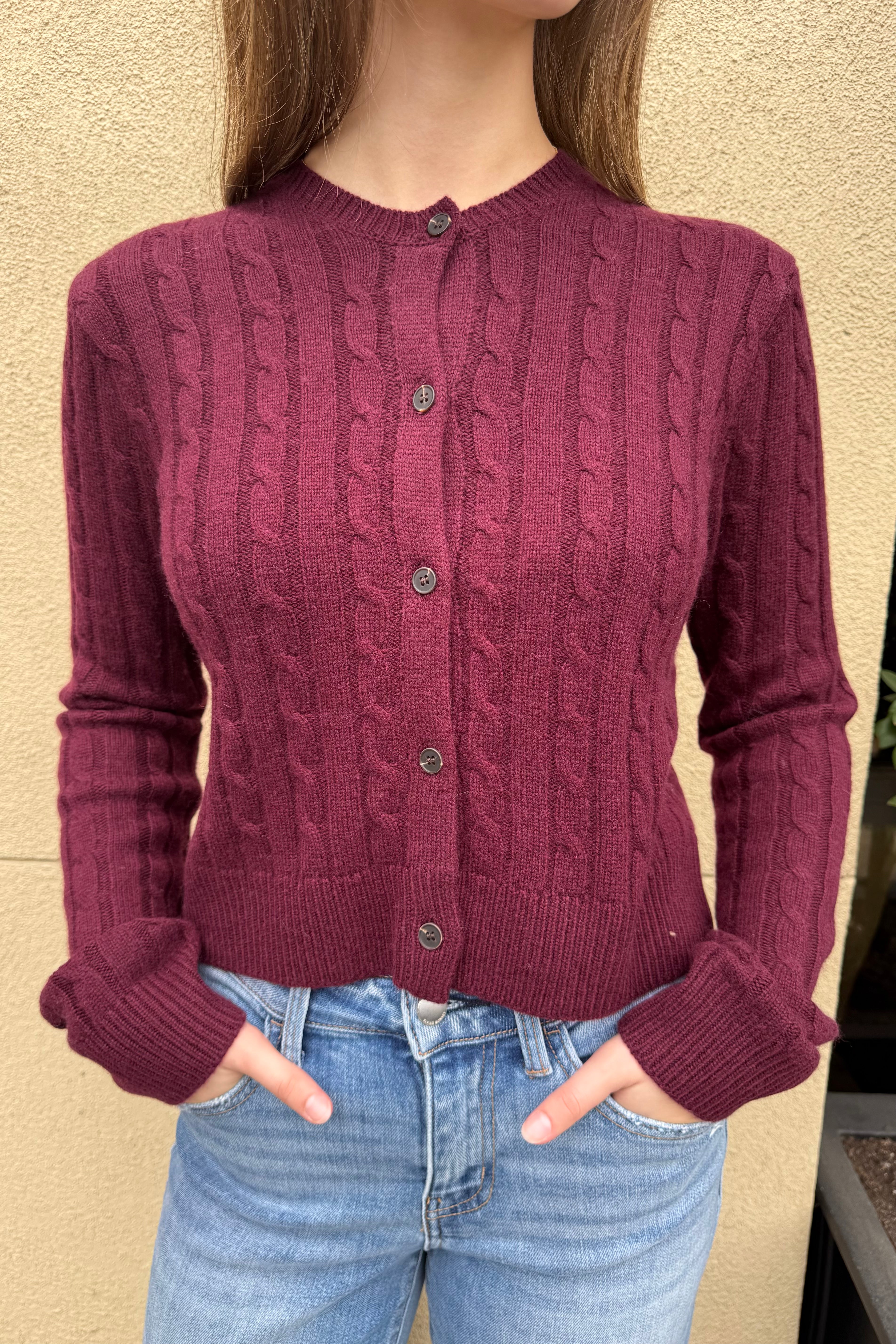ALOURA BERRY CABLEKNIT CARDIGAN