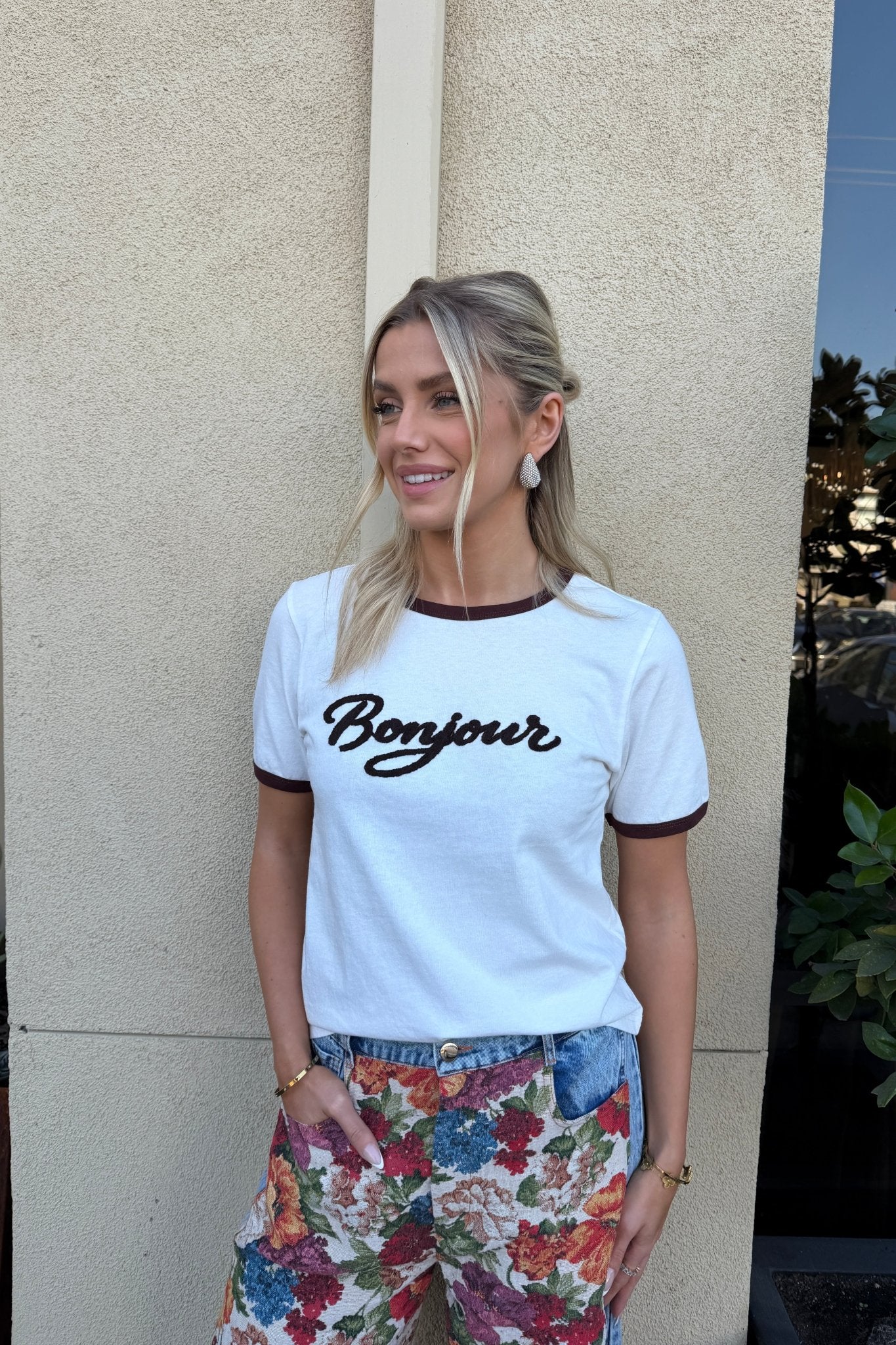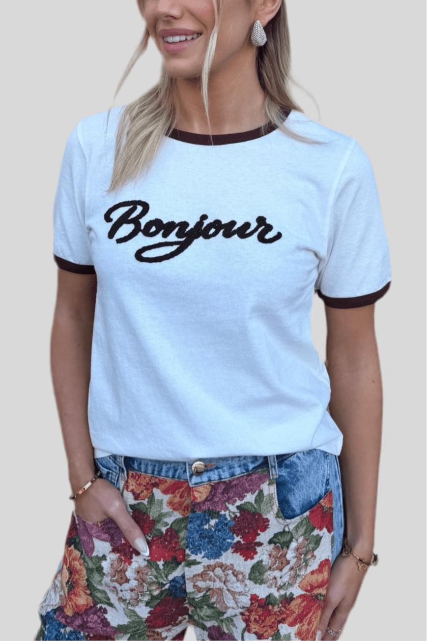 BONJOUR EMBROIDERED TEE