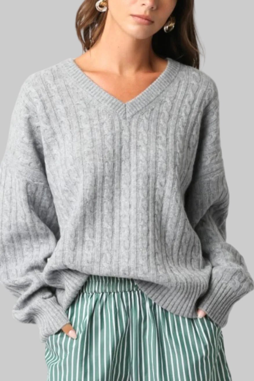 CHARLIZE GREY CABLEKNIT SWEATER