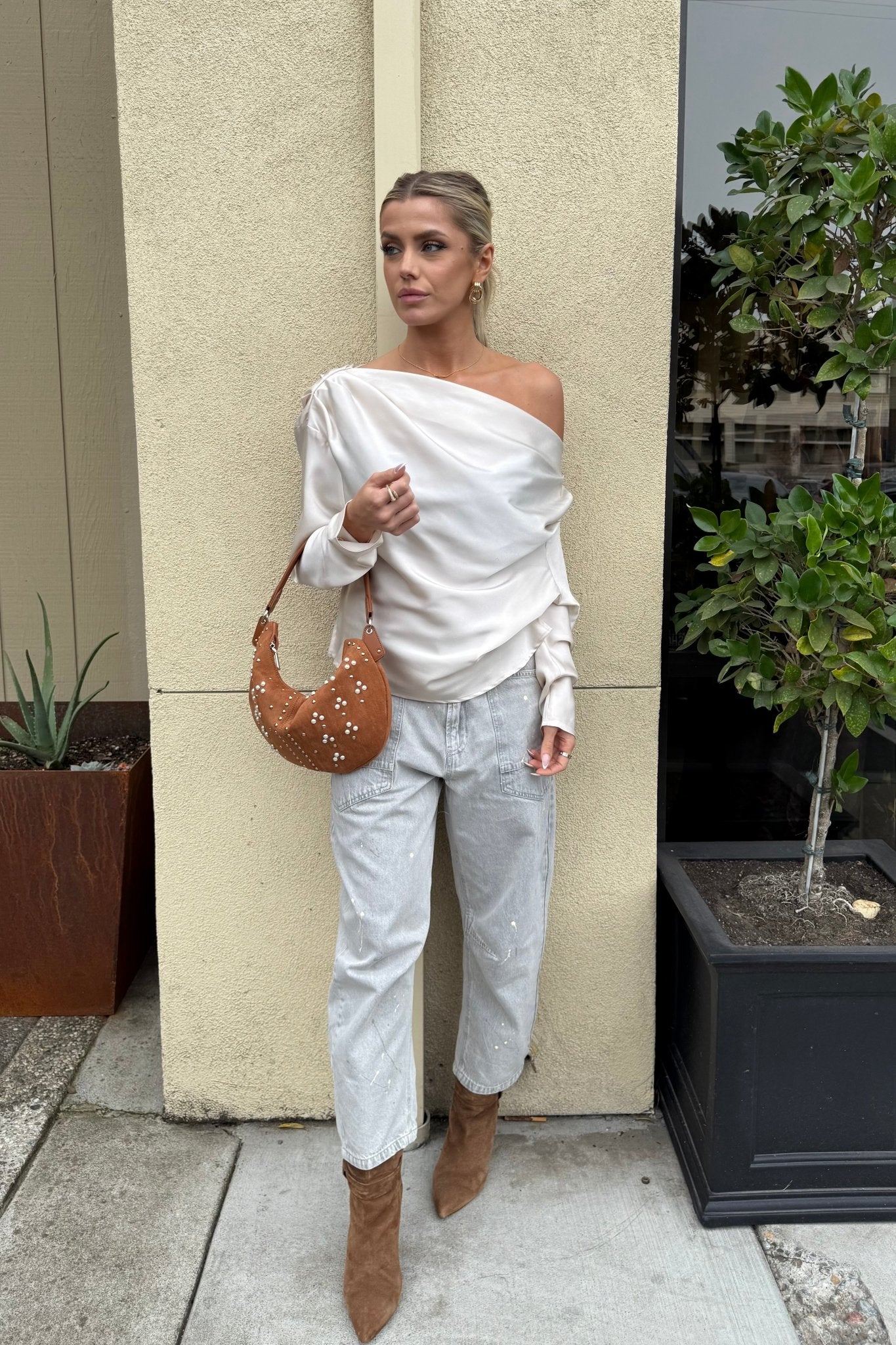 CHESHAM CHAMPAGNE ONE SHOULDER DRAPED TOP