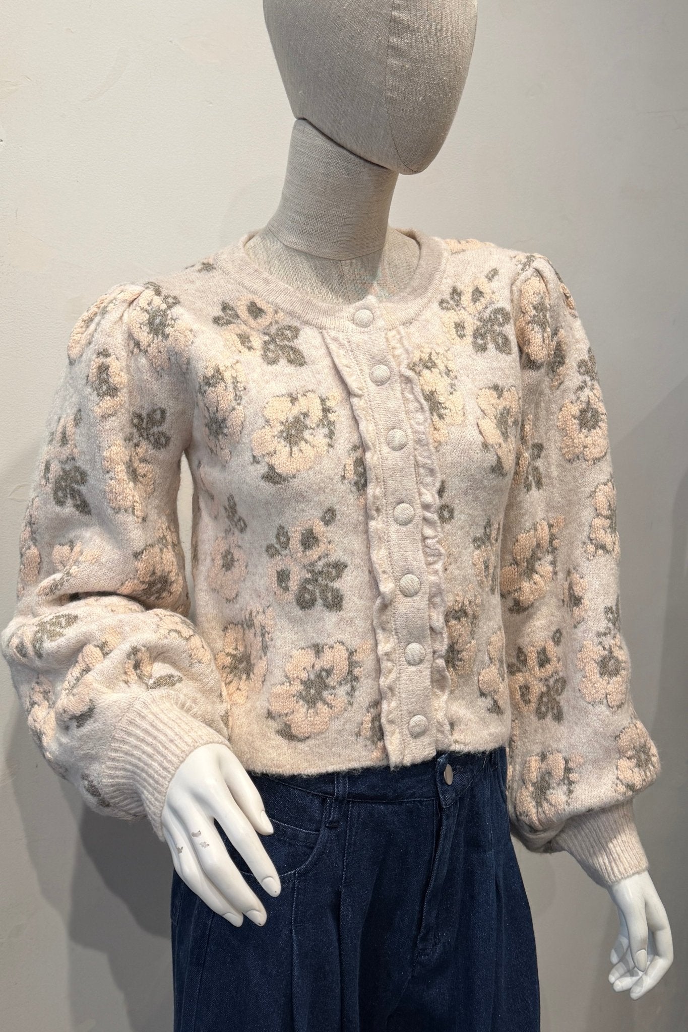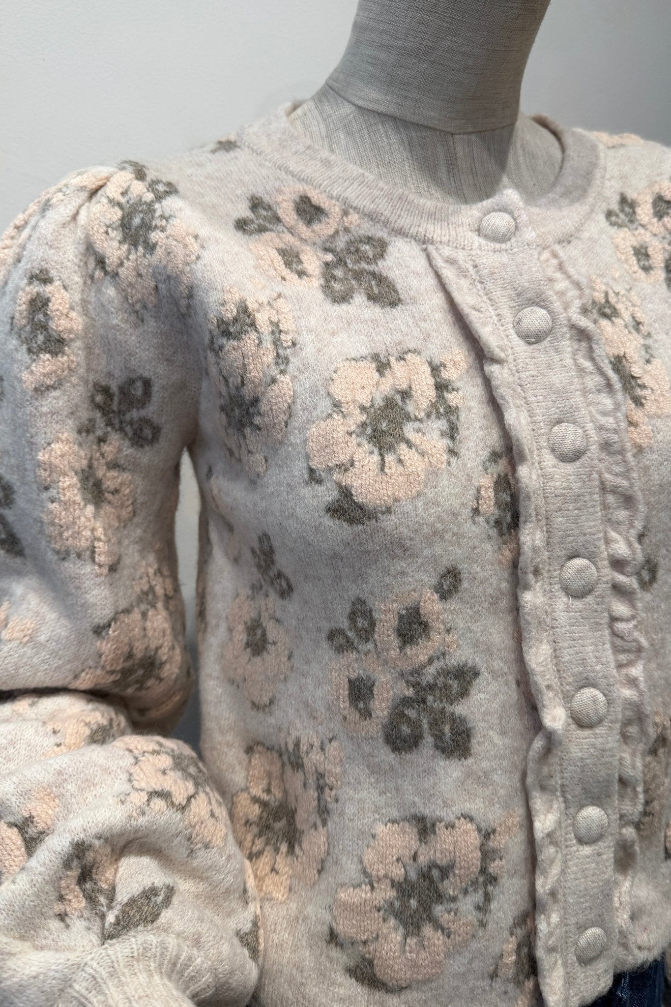 LARKSPUR TAUPE FLORAL KNIT CARDIGAN